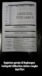 Suasana Lebaran sudah terasa di gereja kami sejak Minggu (12 Juli) lalu. Banyak jemaah dan anggota majelis yang pulang kampung untuk merayakan Idul Fitri, sehingga gereja kami sepi.
