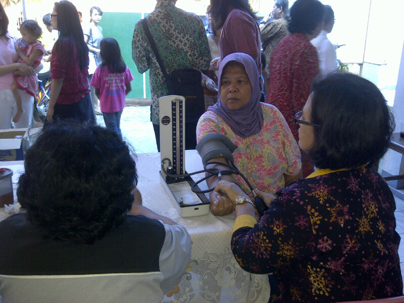 Bersama dengan tim medis dari gereja Kristen Jawa lain yang tergabung dalam GKJ Klasis Jakarta Bagian Barat, hari itu, kami memberikan pelayanan pengobatan kepada sedikitnya 120 warga yang berdiam di kawasan Pesing, Grogol, Jakarta Barat. Dokter yang dibantu beberapa perawat bahkan melakukan ”jemput bola”, mendatangi warga yang karena kondisinya, tidak bisa datang ke posko yang dibuka di halaman gereja.